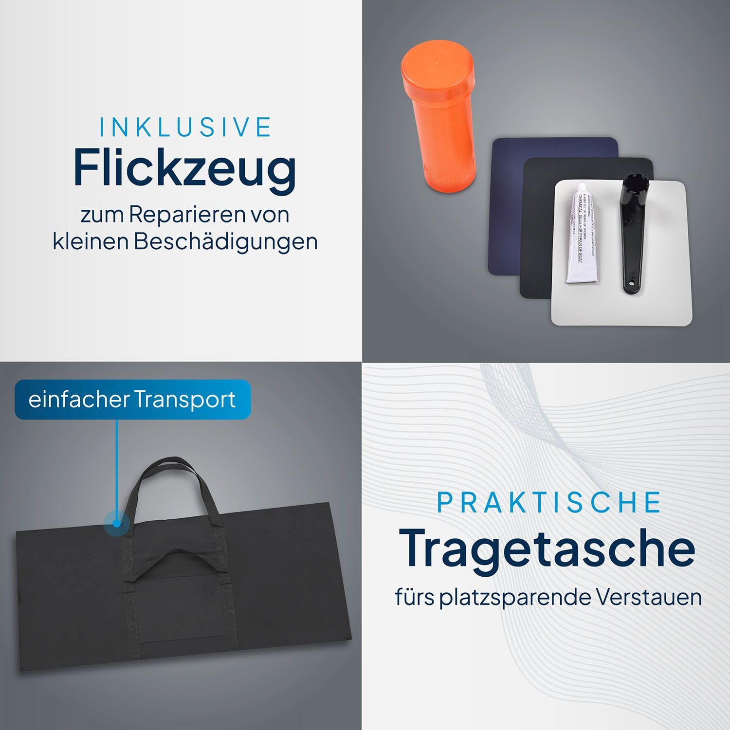 - ✔ Inklusive Luftpumpe: Boot direkt startklar. Das Ruderboot schnell und unkompliziert mit 0,25-0,35 bar Luftdruck befüllen. Drei Luftkammern für mehr Sicherheit. Repair-Kit für kleinere Schäden.