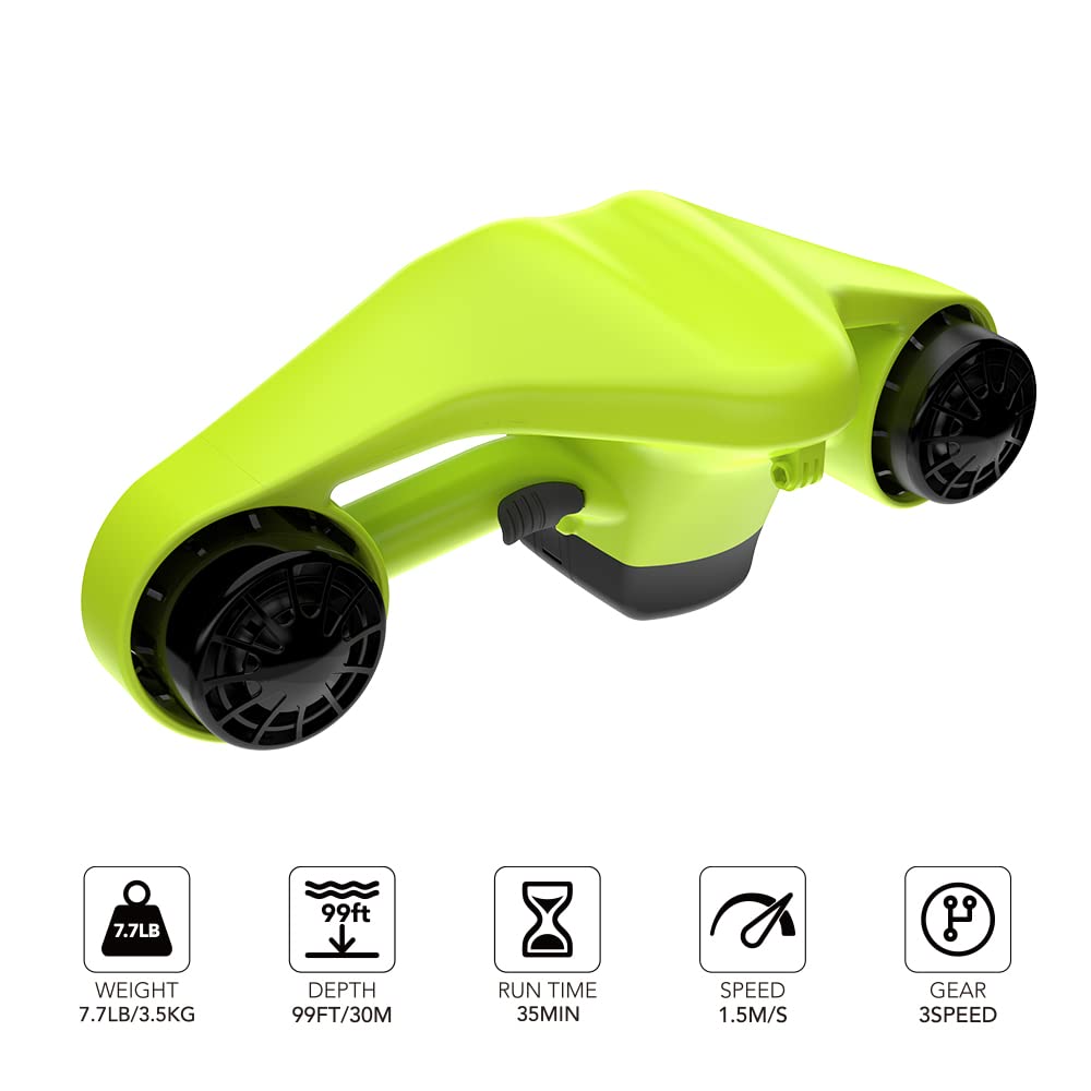 - DOPPELMOTOR: Der doppelte 600-W-Motor setzt 19,84 Pfund Schub frei, um die 40-Meter-Unterwasserwelt zu erkunden. Angetrieben von einem wiederaufladbaren Lithium-Ionen-Akku ist es umweltfreundlich und sicher. und laden Sie 2-3 Stunden Arbeit für 35 Minuten bei normalem Gebrauch auf.