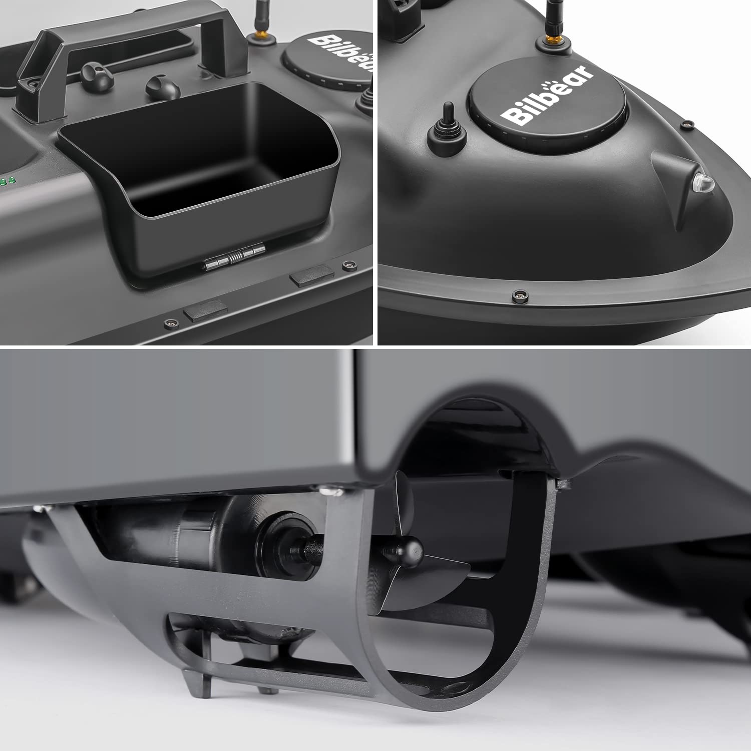 Bilbear Futterboot mit GPS, 3 Klappen und Ersatz-Akku, für Karpfenfischen, Schwarz
