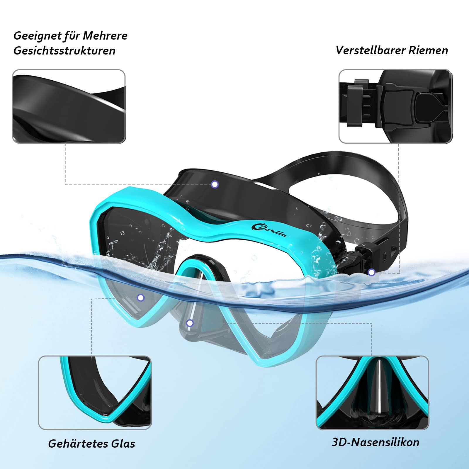 Einzelheiten: Das Dorlle-Schnorchelset macht das Schnorcheln sicherer, erhöht den Spaß und ist einfach!