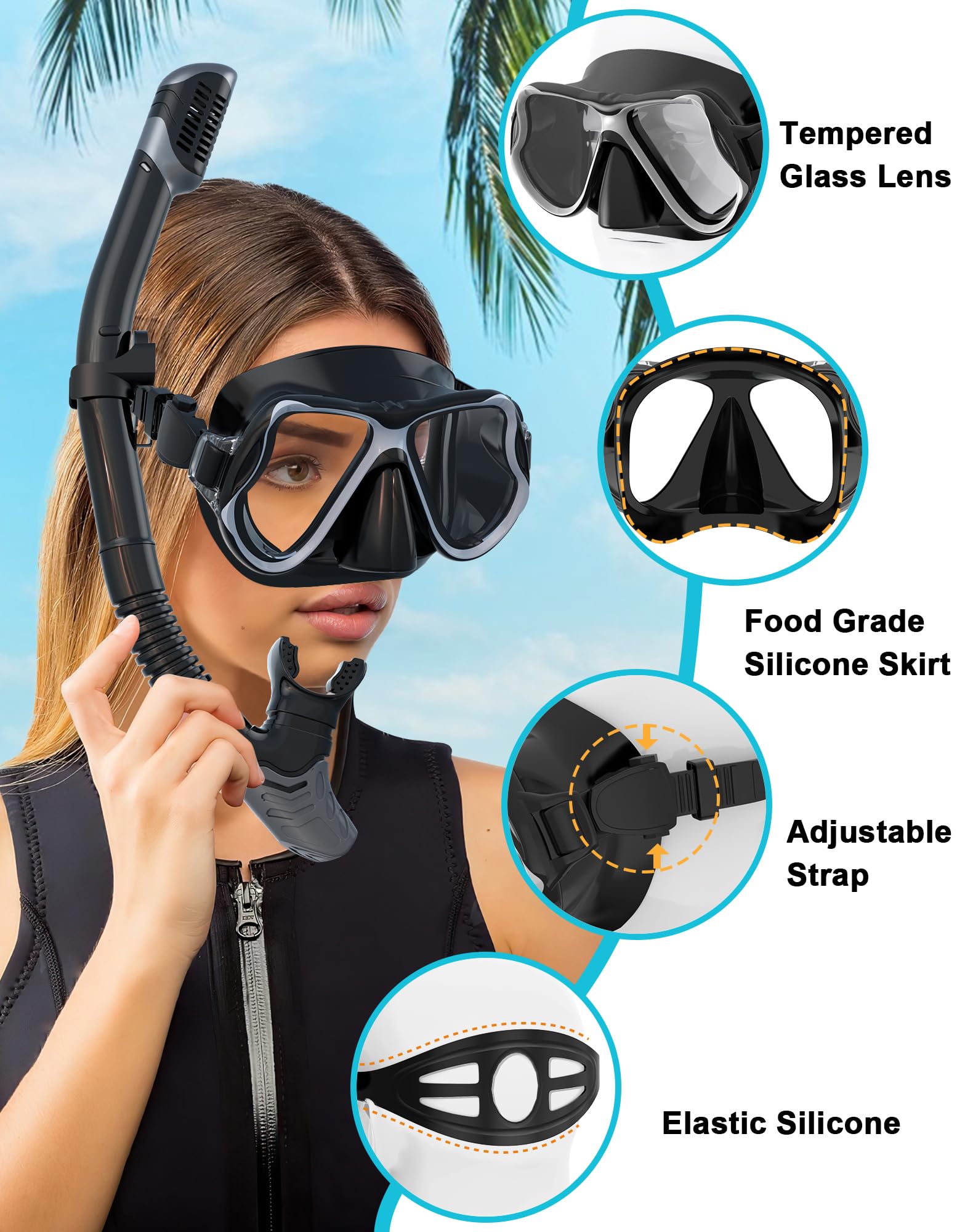 - Einfach zu bedienen für alle: Unser erwachsenes Schnorchelset steht für Benutzerfreundlichkeit und Komfort. Mit einem verstellbaren Band passt die Maske den meisten Gesichtern. Genießen Sie jetzt eine unvergessliche und sichere Schnorchelsession mit Ihrer Familie und Ihren Freunden!