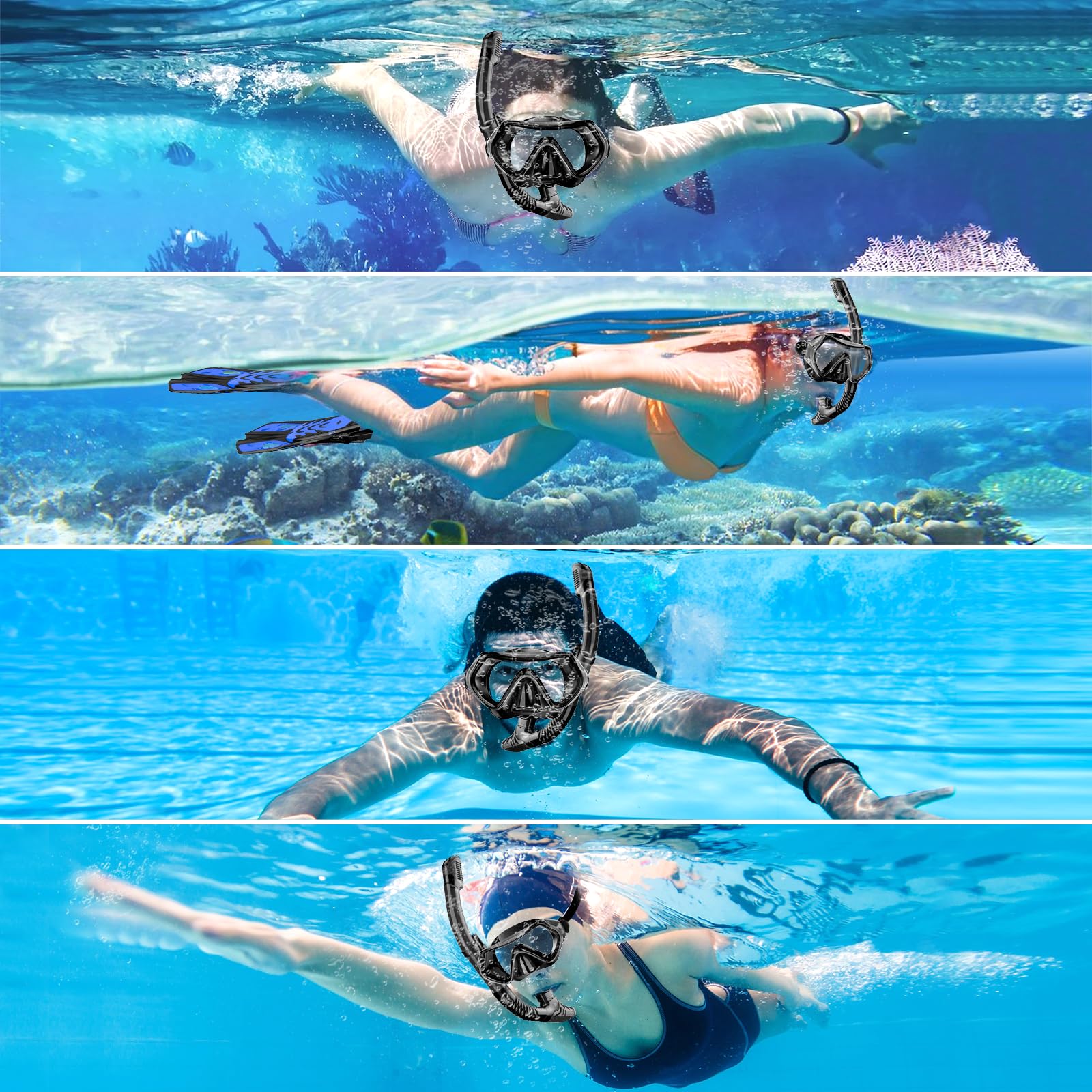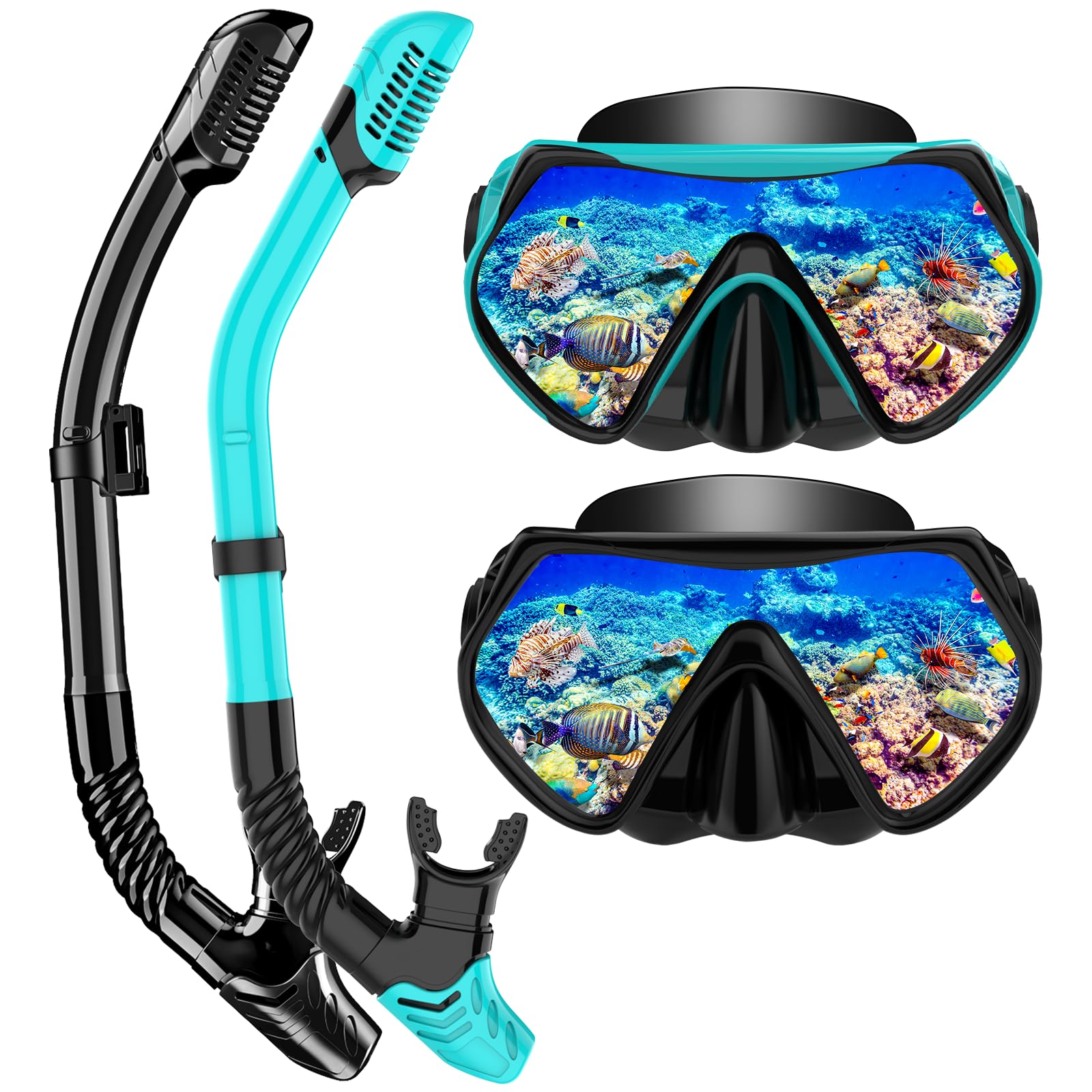 - 【Sicherer Augenschutz】Die Spiegeloberfläche der Schnorchelmaske ist aus gehärtetem Glas, das stark und beschlagfrei ist und Ihre Augen sicher schützen kann. Es ist die beste Wahl zum Schwimmen.